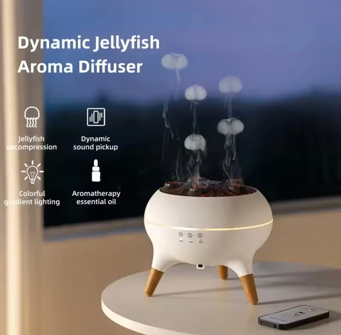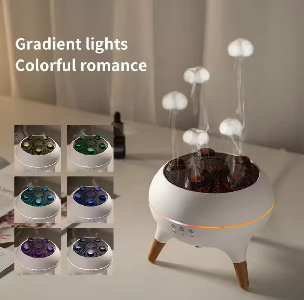 Convierte cualquier espacio en un rincón lleno de armonía y frescura con este humidificador ultrasónico multifuncional. Su diseño moderno con luces LED de colores gradientes crea una atmósfera romántica y relajante ideal para dormitorios, salas u oficinas.